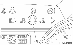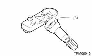 (1) | TPMS & keyless entry CM or TPMS CM | (2) | Tire pressure warning light | (3) | Snap-in type transmitter |