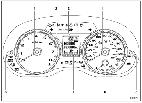 The illustration above is a typical example. For some models, the combination meter may be slightly different than that shown in the illustration.