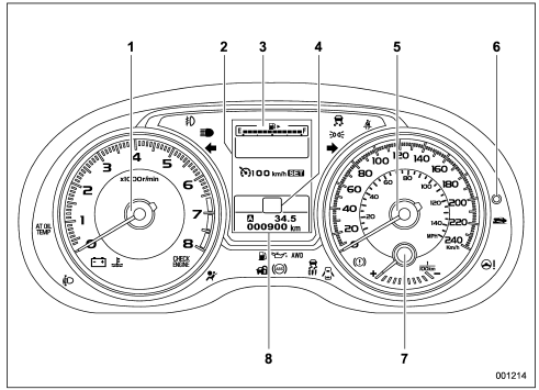 The illustration above is a typical example. For some models, the combination meter may be slightly different than that shown in the illustration.
