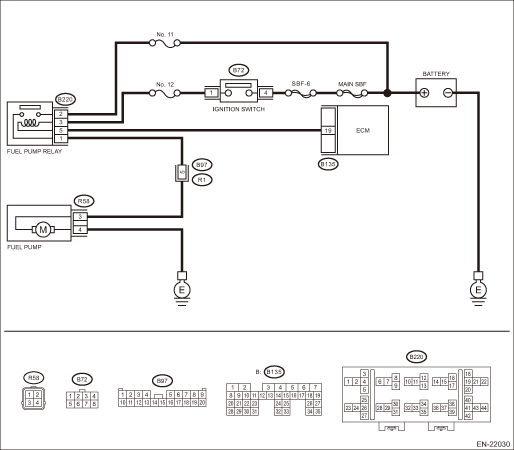 • Open circuit in harness between fuel pump connector and fuel pump relay connector