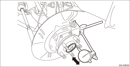 (2) Using a dial gauge, check the axial looseness. Replace the hub unit bearing if looseness exceeds the limit.