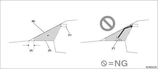 Do not stick or attach the aftermarket parts on the prohibited area (D) shown in the figure below.