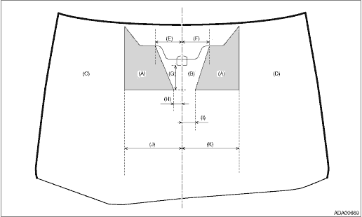(C) | Glass repairable area (LHD side) | (G) | 120 mm (4.7 in) | (K) | 280 mm (11.0 in) |