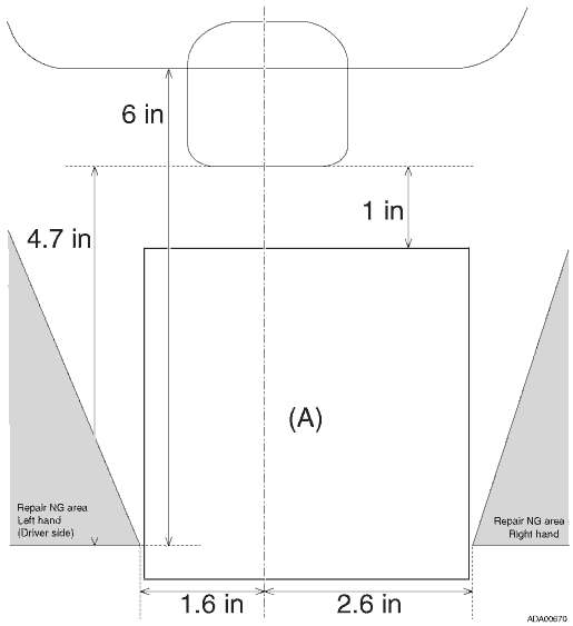 (D) | Glass repairable area (RHD side) | (H) | 40 mm (1.6 in) |