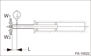 (4) While applying a force of W2 [20 N (2 kgf, 4 lbf)] from the opposite side of W1, read the dial gauge indication P2.