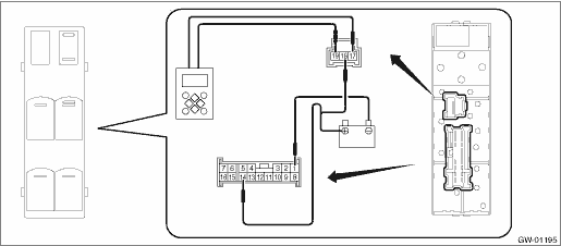 2. Connect the battery and the Subaru Select Monitor to the switch - power window main terminal.