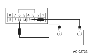 14 (+) — 12 (−) | Connect battery to the terminals | Light ON |