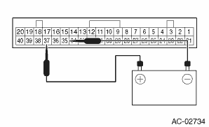 37 (+) — 35 (−) | Connect battery to the terminals | Light ON |