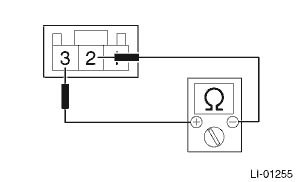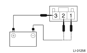 3 (+) — 1, 2 (−) | Switch OFF | Light OFF |