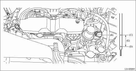 (A) | Oil level gauge | (B) | Oil filler cap | (C) | “F” line |