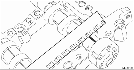 • Set the dial gauge at end surface of camshaft.