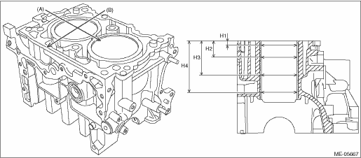 • Measure the cylinder liner with cylinder blocks separated (into cylinder block RH and cylinder block LH).