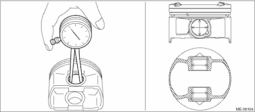 (1) Using a caliper gauge, measure the inner diameter of piston pin hole.