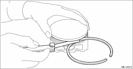 3. Fit the compression ring straight into the piston ring groove, then check the clearance between compression ring and piston with a thickness gauge. If it is not within the standard, replace the compression ring.