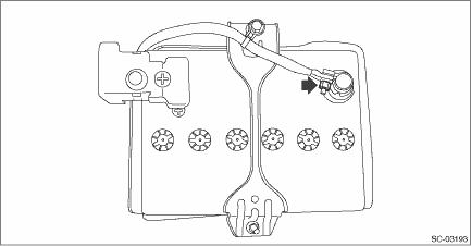• Be careful not to let the metal tools contact the positive battery terminal and anything connected to it. When the operation using a metal tool to the positive terminal or anything connected to it is required, disconnect the battery ground terminal before starting the operation.