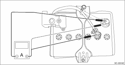 (13) While connecting the circuit tester positive terminal with the ground terminal as shown in the figure below, remove the ground terminal from the battery.