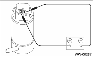 Apply battery voltage to the connector terminal of the motor pump assembly - washer, and make sure that the motor operates.