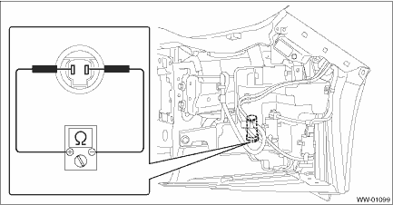 5. Using a tester, measure the resistance of the washer fluid level sensor.