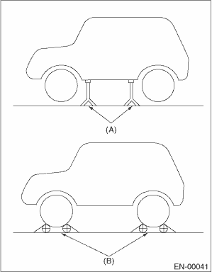 2. Lift up the vehicle using a garage jack and place it on rigid racks, or drive the vehicle onto free rollers.