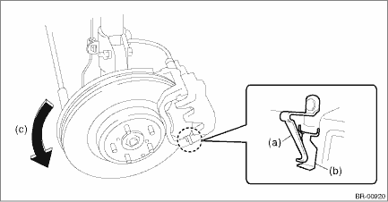 (a) | Pad return spring | (b) | Supporting surface of pad clip | (c) | Direction of brake rotor rotation |