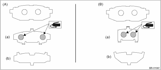(A) | Pad - disc brake rear outer | (B) | Pad - disc brake rear inner |