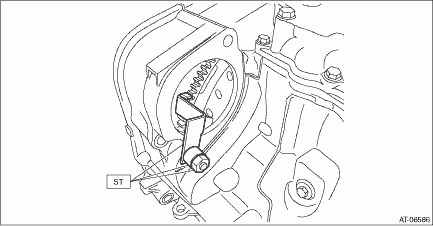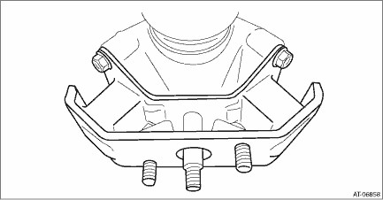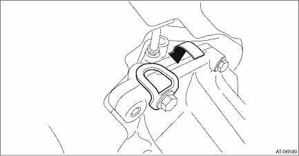 6. Strike and bend the transmission hanger of transmission rear with a rubber hammer etc. so that it gets in contact with the transmission case.