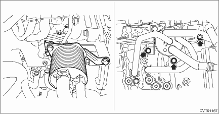 22. Replace the CVTF inlet hose and CVTF outlet hose. CVTF Cooler (With Warmer Function) > REMOVAL">