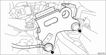 27. Install the pitching stopper bracket and transmission radio ground cord.