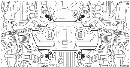 • Temporarily attach the two engine connecting bolts and two nuts (lower side).