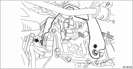 15. Install the pitching stopper bracket and transmission radio ground cord.