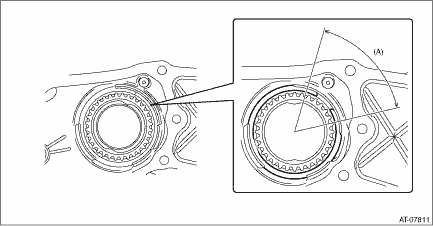 4. Install the snap ring so that its cutout portion is securely fitted into the snap ring groove of the oil pump chain cover.