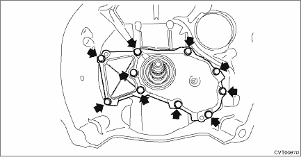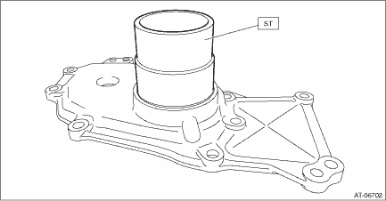 • Apply CVTF to the oil seal lip and press-fitting surface.
