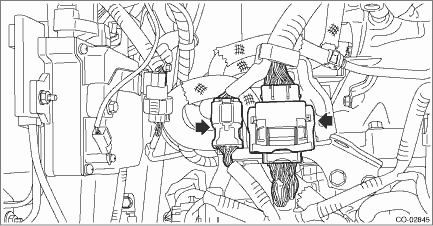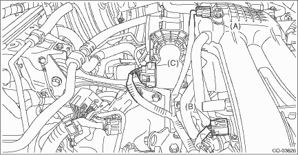 MANUAL TRANSMISSION AND DIFFERENTIAL(5MT) > Switches and HarnessREMOVAL1. BACK-UP LIGHT AND NEUTRAL POSITION SWITCH1. Disconnect the ground cable from battery.2. Remove the clip (A) from the air intake boot.3. Loosen the clamp (B) connecting the air intake boot and air cleaner case (rear).4. Loos ...