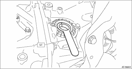 5. Using the ST, install the front drive shaft assembly to the transmission.