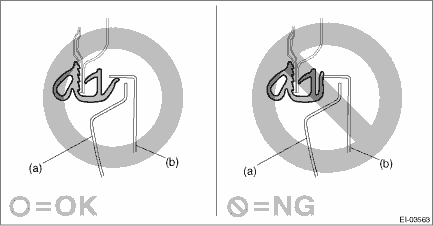 • When installing the cover - instrument panel side (a), make sure that the body side weather strip - flange front does not come inside the panel COMPL - instrument (b).