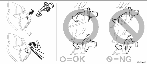 • After installing the panel center assembly, check that the air vent grille of the panel center assembly is inserted correctly into the air vent duct.