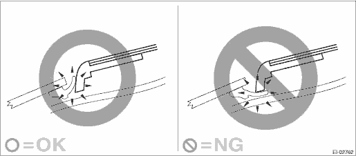 • While installing the molding - roof, be careful not to catch the glass molding with the tip of the front side and rear side.