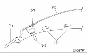 • Always replace the clips that were damaged during removal of the molding - roof with new parts.