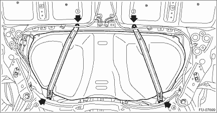 2. Tighten the bolts of the fuel tank band in the order shown in the figure.