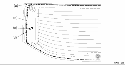 (2) Apply adhesive to the glass - rear gate end back surface.