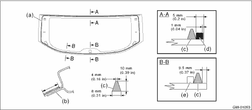 (a) | 10 mm (0.39 in) | (b) | 8 mm (0.31 in) | (c) | Sealant gun |