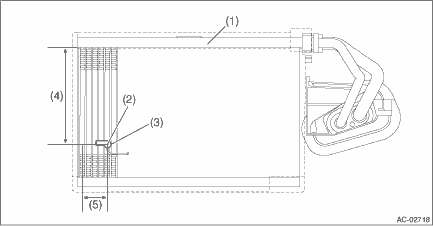 (1) | Evaporator ASSY - cooling | (3) | Thermostat - cooling | (5) | Fifth row fin from the left end |