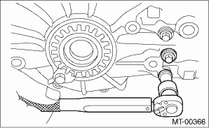 2. Install the reverse fork rod through the hole on the rear of the transmission case. Press out the ST using the reverse fork rod, and fix with outer snap ring.