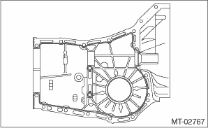 1. Wipe off grease, oil and dust on the mating surfaces of transmission cases with cleaning solvent.