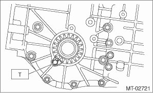 (6) Screw in the differential side retainer of the RH side of the transmission case additionally by 1 notch in order to apply preload on taper roller bearing.