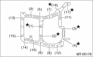 9. Tighten the left and right side of the transmission case with the 17 mounting bolts.