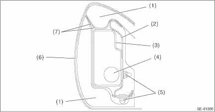(1) | Pad ASSY - front seat backrest | (4) | Side airbag module inflator | (7) | Side airbag guide cloth |