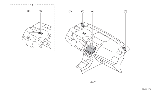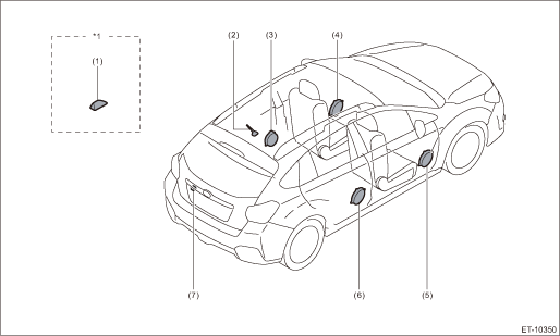 (1) | Telematics antenna | (4) | Front door speaker ASSY LH | (6) | Rear door speaker ASSY RH |