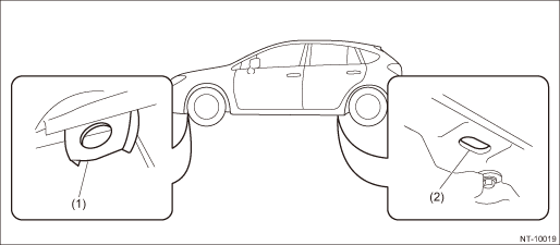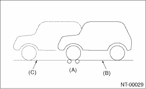 • When towing the vehicle equipped with Subaru EyeSight, be sure to hold down the pre-collision brake OFF switch to turn OFF the pre-collision brake function. (Check that the pre-collision brake OFF indicator light in the meter lights up.)
