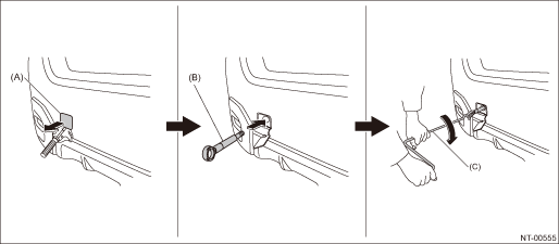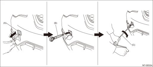 (A) | Hook cover | (B) | Towing hook (eyebolt) | (C) | Jack handle |